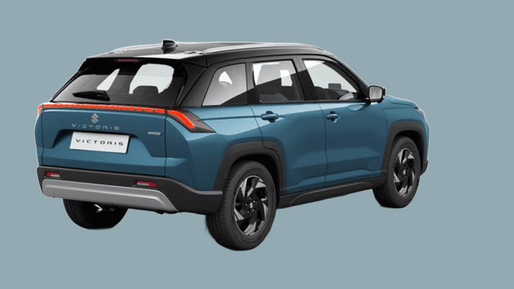 Maruti Victoris में मॉडर्न और बोल्ड डिज़ाइन के लोगो सीधे तौर पर नजर आ रहे हैं। इसमें LEDs, DRLs, और कई अन्य फीचर्स शामिल हैं: साइड से देखने पर 17-इंच के डुअल-टोन एलॉय व्हील्स, फ्लोटिंग रूफ इफेक्ट, और ब्लैक्ड आउट ORVMs इसे और भी खास बनाते हैं। पीछे की तरफ कनेक्टेड LED टेल-लैम्प्स और सिल्वर स्किड प्लेट का डिज़ाइन इसे पूरा करता है। इसके अलावा, इसमें 10 नए कलर ऑप्शन (कुछ डुअल-टोन) भी उपलब्ध हैं।